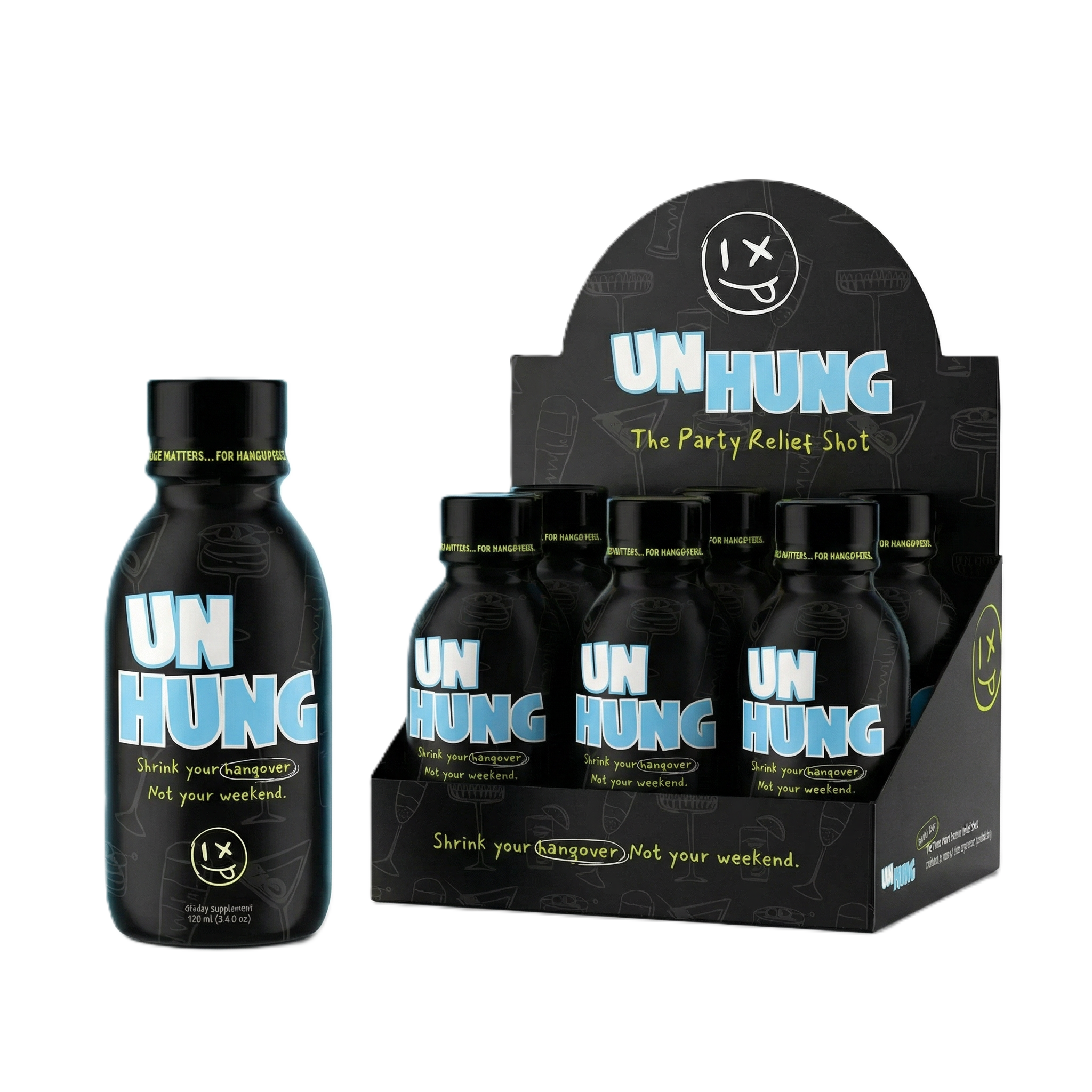 UNHUNG is the bold, science-backed recovery shot that helps you reset, recover, and get back to your regularly scheduled chaos.